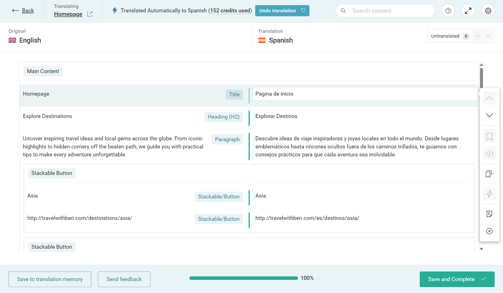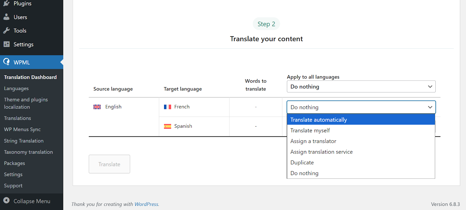 Once enabled, WPML will translate all your website content, and will automatically update translations whenever you edit the original content.